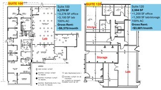 16203 Park Row Suite 100 & 120 100% AC Office & Laboratory Lease until 8/30/2027 Size: 8,882 sf Suite 100: 6378 sf Suite 200: 2504 sf Available in Nov 2025 Gross Rent (as of Aug. 2025): $13,055.70 monthly