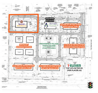 Spanish Schoolhouse (the "Property") is strategically located adjacent to the Action Behavior Center within a master-planned mixed-use development at the northwest quadrant of Main Street and Fishtrap Road in Providence Village, Texas. The Property benefits from strong visibility, convenient access to US Highway 380, and proximity to future medical and retail developments, contributing to long-term tenant synergy and land value appreciation.