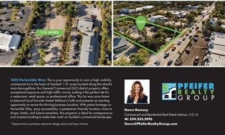 Prime Commercial Lot! This is your opportunity to own a high-visibility commercial lot in the heart of Sanibel! Located along the island’s main thoroughfare, this General Commercial (GC) district property offers exceptional exposure and high traffic counts, making it the perfect site for a restaurant, retail space, or professional office. This lot was once home to beloved local favorite Sweet Melissa’s Café and presents an exciting opportunity to revive this thriving business location. Depending on your vision, there is an option to obtain the design plans for redevelopment of a restaurant and an opportunity to obtain a liquor license, adding value and potential to your investment. With prime frontage on Periwinkle Way, easy accessibility, a pedestrian-friendly location close to shops, hotels, and island amenities, this property is ideal for entrepreneurs and investors looking to make their mark on Sanibel’s commercial landscape. Don’t miss out on this exceptional development opportunity in one of Southwest Florida’s most sought-after destinations!