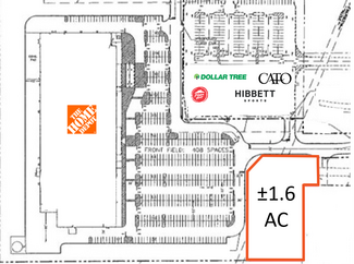 Ideal for restaurants, fast food, and retail development Ground Lease Area retailers include The Home Depot, Walmart, Dollar Tree, Cato, Hibbett Sports, Dollar General, Badcock Home Furniture & More, Shoe Sensation Taco Bell, Auto Zone, Hampton by Hilton, Pizza Hut, Kentucky Fried Chicken, and Tractor Supply Co.