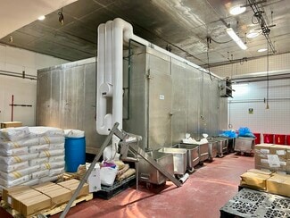 Food Processing Facility - USDA & BRC. 15,600 SF Freezers up to 30' High; 2,000 SF Cooler; refrigerated storage. 17,000 SF Production Area, Floor Drains, Clarifier, Cooking area with ovens, spiral freezer. 5 Dock High Loading, Ground Level Loading. 2,000 Amps Power. Near 10 & 215 Freeways. Fenced yard for truck and car parking. Current operation is meat processing and cooking of dog food. Possible for beef, poultry, dairy, produce, frozen foods, pet food, cheese.