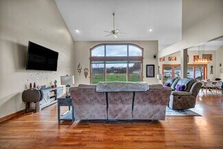 Welcome to this 4 bedroom, 3.5 bath custom-built home w/ premier equestrian facilities in Columbia Station! Set on 10 acres of flat, usable land & fenced pastures, this property is designed to support both personal enjoyment & professional equestrian operation. The residence showcases a covered front porch, 3 car attached garage, & a rear patio w/ fenced yard overlooking the grounds. Inside, the open-concept layout is ideal for today’s lifestyle, highlighted by vaulted ceilings & a beautifully designed kitchen featuring granite counters, a sprawling center island, built-in appliances & walk-in pantry. The 1st floor primary suite provides a stunning custom bath & double walk-in closets. The main level also includes a versatile laundry room, a spacious mudroom, & the convenience of a whole-house central vacuum system. Upstairs are 3 more bedrooms, including a jack-and-jill bath & a private en-suite, along w/ a flexible bonus room. A walk-out basement adds even more possibilities! The equestrian facilities are purpose built for both professional functionality & everyday use. Horse Barn 1 features 12 stalls w/ concrete aisles, rubber mats, automatic Nelson waterers, multiple tack rooms, & a lean-to addition ideal for equipment & hay storage, plus a fly spray system for added comfort. Horse Barn 2 expands the operation w/ 16 stalls, 2 concrete aisles, lean-to space, a heated utility room, overhead hay loft, wash stall w/ hot/cold water, 3 tack rooms, feed room, & a half bath. The 65' x 140' indoor arena offers insulated metal ceilings, natural gas tube heaters, sand footing, wood side walls, full lighting, & a heated viewing room. The 80' x 200' outdoor arena includes sand footing, perimeter fencing, a watering system, & night lighting, making the facility turnkey for year-round riding & training. Just minutes from SouthPark Mall, highway access, & Metroparks! This exceptional property allows you to embrace the equestrian lifestyle w/ modern comfort & convenience.