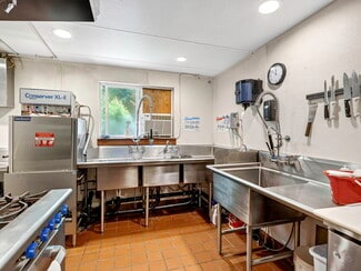 A peaceful creek runs alongside the property, adding to the tranquil, forested setting and offering breathtaking views of the surrounding mountains. The 5,000+ SQFT restaurant and bar is fully equipped with a spacious commercial kitchen. With multiple dining areas and a large 2,000 SQFT patio overlooking the creek and golf course, this is the perfect venue for weddings, private events, or everyday dining with a view.
