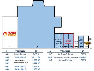Home to Family Dollar, Spa Rituals Salon and the hugely popular Sarah's Kitchen Beach Diner, this recently updated center has one 2,400 sf unit, as well as the 26,000 sf anchor space which can be leased as-is or subdivided if needed. New to the center is Joey O's Pizza in Units 1637-1639 with planned opening date late Summer 2020.