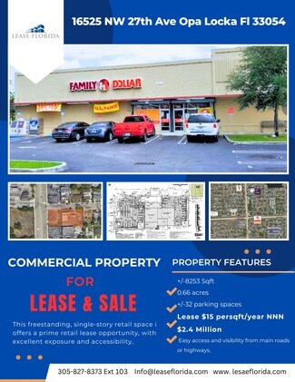 Excellent retail for lease this space is its 8200 sf ,former family Dollar that is moving out, store has an open layout, a stock room about 1000 sf and 2 ADA restrooms and a managers office, parking in the front and rear of the store, this is a corner location with access from 165th street or from 27th ave. Easy delivery by an 18 wheeler , lease term negotiable. Ready to open. Can be used as retail, a showroom warehouse, office. Very high ceilings, street and building signage. Local owners will help make a deal Lots of car traffic , easy access from the major palmetto and highways with a direct exit