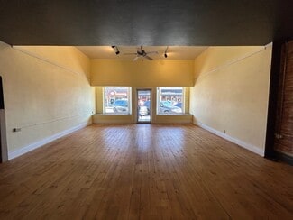 Character, convenience, and opportunity all in one place!! Put your business in the spotlight with this eye-catching downtown storefront featuring large display windows, excellent street exposure, and steady pedestrian traffic. Inside, you’ll find a bright, open floor plan with warm wood floors, exposed brick accents, and modern track lighting — the perfect blend of historic charm and updated style. The flexible layout offers plenty of room to design the space around your brand, with the option to customize or expand into additional square footage at the rear for an added cost. An incredible opportunity to create something special in a highly visible, high-demand location.