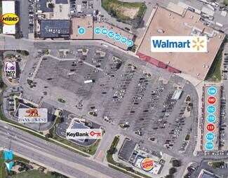 Walmart-anchored shopping center featuring online order and pick-up in-store facility.