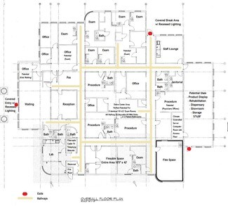 Fully-equipped medical office building ready to meet your needs. With convenient automatic sliding doors at the front entry, 13 exam/procedure rooms, 9 bathrooms, a lab, staff lounge, and ample parking for 81 vehicles, this space offers both functionality and convenience. Building includes a WET Hydraulic Sprinkler System and 800 Amp (277/480Y) volt 3-phase electrical service.
