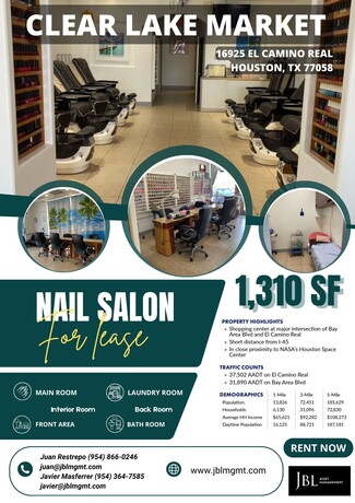Shopping center anchored by strong performing, high-traffic intersection in Clear Lake. Notable tenants include Pet Supplies Plus, Capital Bank, Sola Salons, Papa Johns, PDS Texas Dental and Supercuts.