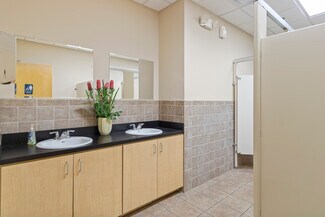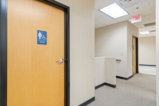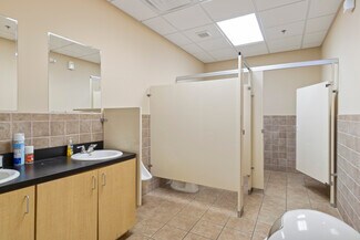 Inside, the space is thoughtfully designed with a mix of private offices, conference room, break rooms, and open bullpen areas to accommodate collaborative and executive work styles. Both floors feature men’s and women’s restrooms, enhancing comfort and efficiency for staff and visitors. Approximately 78% of the property is dedicated to office use, creating an environment ideal for administrative and client-facing functions. The warehouse component, featuring a dock-high and drive-in door, provides flexibility for light distribution or storage needs. This combination of office sophistication and warehouse utility makes the property a rare find in the Kennesaw market.