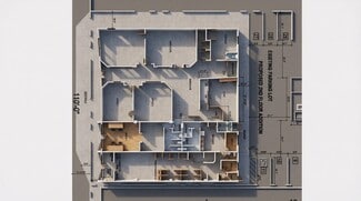 The building features a full 8,800 SF contiguous floor plate, high unfinished vaulted ceiling height, 36 on-site surface parking spaces, signage opportunities, and convenient street access. The layout allows for open floor plans, private offices, medical treatment rooms, showroom space, or light warehouse configuration depending on tenant needs.