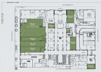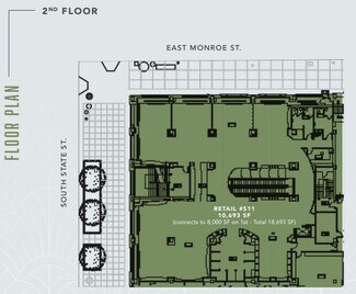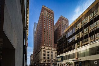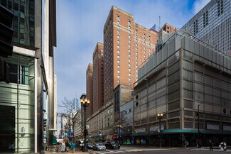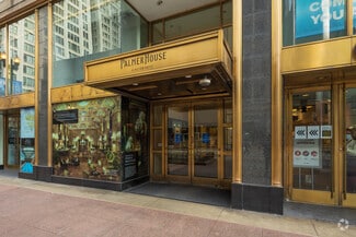 Located at the base of the iconic Palmer House Hilton, which occupies an entire city block with frontage on East Monroe Street and Wabash Avenue. The Palmer House