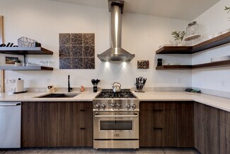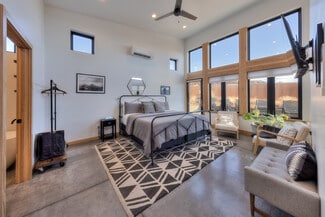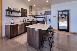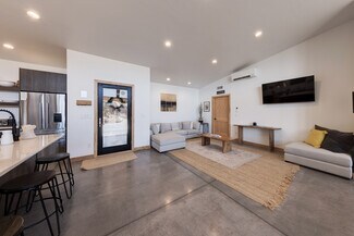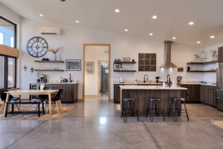 RUSTIC COMFORT- An established and popular vacation rental set on a half-acre in Moab's south Spanish Valley offering great proximity to Ken's Lake, the La Sal Mountains and the popular Steel Bender and Flat Pass trails. The current modern architecture promotes vaulted rooms with walls of glass enhancing the extreme views and vibrant living spaces. The sleek design allows for simplicity and great rental function with individually climate-controlled zones, durable concrete floors, low maintenance metal and stucco siding, as well as natural xeriscape landscaping featuring Juniper trees, sage, and natural grasses. The indoor living area provides exceptional entertainment accommodations with the multiple sitting areas, an open kitchen with natural gas stove, dual sinks, island prep counter with bar seating, formal dining accompanied by a wet bar offering coffee service and beverage chiller; all finished with Quartz countertops and stainless-steel appliances. Take the gathering outside to enjoy the sun dancing on the red rocks from your selection of conversation and BBQ areas- with patio access off the main living space, primary bedroom, and guest room. The remote primary bedroom celebrates a soaking tub and separate walk-in shower. You and your guests will enjoy ease of drive-in and toy access with the circular driveway, double carport, and covered breezeway entrance. This rare, private rental property has management flexibility, no HOA, and established rental history!