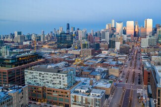Steps away from Morgan Station in the Fulton Market District, this thoughtfully-designed office is in the creative hub of the West Loop. The warm, welcoming, and professional space boast a modern warehouse aesthetic with sun-flooded interiors and exposed brick.
