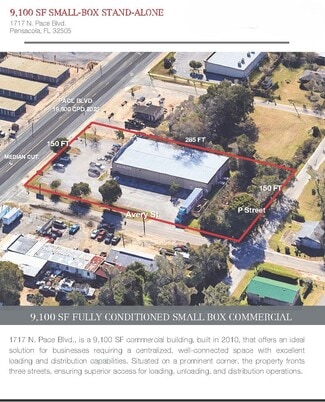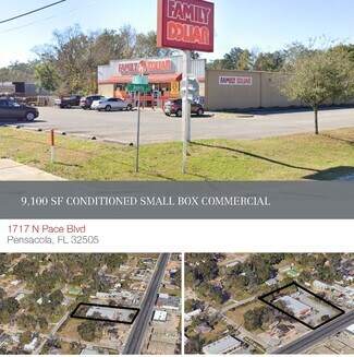 Take advantage of this incredible opportunity in the heart of Pensacola’s Pace Blvd corridor. This former Family Dollar (vacated June 2025) offers ±9,100 SF of clear-span, fully conditioned space with 15’ interior ceiling height—perfect for retail, flex, or service-based use.