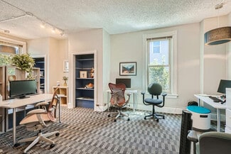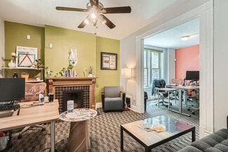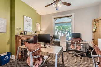 1st floor OR 2nd floor options available; entire building of 4,144 SF considered. Affordable lease rates of just $21-22/SF plus utilities 1st floor has up to six separate rooms and/or conference rooms, with two restrooms and access to the 2nd floor kitchenette 2nd floor has a large conference room, three large offices, two small offices, single restroom, kitchenette and breakroom. Great for professional, wellness, creative and general office uses. 24/7 access available Ample on-street parking with no parking meters Historic "duplex" building with lots of character and natural light. Do not disturb the building owner; shown by appointment only.