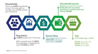 - Median age: 37, an ideal demographic for medical and professional services