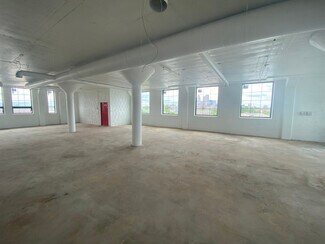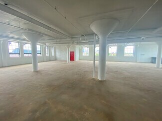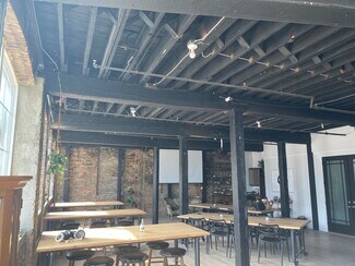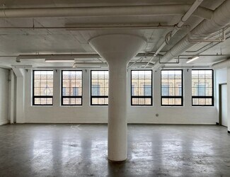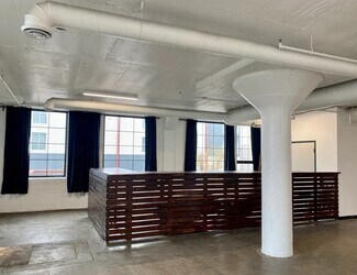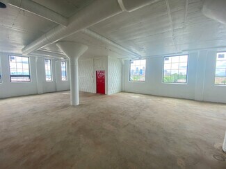 The building has been extensively renovated, completely transforming it while still preserving its original character. Previously vacant just a year ago, it is now a bustling center for artists, makers, and creative office users. This beautifully refurbished brick and concrete building, with its rich history, is an ideal location for new and existing businesses alike. As part of the ongoing renovation process, all interior spaces have been painstakingly renovated, including brand new windows throughout, new restroom facilities on every floor, and a refinished parking lot.