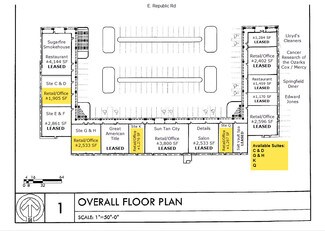 Signage available facing Republic Rd in addition to monument sign. Surrounding tenants (some of which have been located in the center for 20+ years) include; Great American Title, Lloyd's Cleaners, Suntan City, Edward Jones, Details Salon and Springfield Diner.