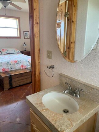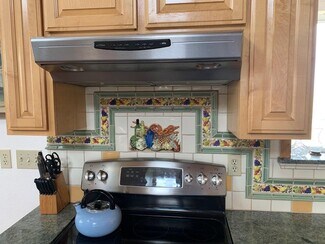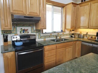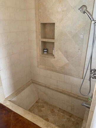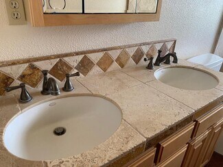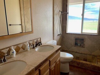 • Second bath has dual sinks in granite countertop, sunken tile shower that can be used as soaking tub.