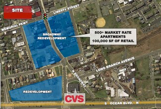 Located in the heart of Long Branch's lower Broadway redevelopment, which includes over 500 market rent apartments and 100,000+ SF of retail space, this art-deco style bank building sits on a traffic controlled intersection with great visibility. This property has a newer roof and ideal basement space. Just blocks from Long Branch beaches and near Monmouth Hospital, Monmouth University, and New Jersey Transit - Long Branch Station, 174 Broadway is nestled between many well-known retailers and in an economic opportunity zone.