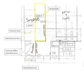 • Excellent decorative block construction. • 5,000 SF and 8,000 square feet. • Fully sprinklered. • Shared office/restroom. • (1) overhead door with trench drain (14x12). • 3-phase power and backup generator. • Ample site and fenced parking. • 26’ clear ceiling. • Security system and fencing. • (2) exterior truck docks. • Easy Highway 43 access. Improvements •This is a “Class A Warehouse” constructed in 1985/1989. It is of decorative block construction and is in excellent condition. The entire building is 58,900 SF. The demisted space is 5,000 SF and 8,000 SF with 1,048 SF of shared office with restrooms. There is separate on-site parking with this space and it includes shared use of (2) truck docks and (1) overhead door. Lease Information •$8.50 SF annually Gross Lease plus utilities. •3-5 year lease