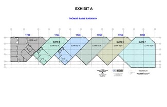 1740-1760 Thomas Paine Parkway is a flex/industrial space with two available suites. Suite E (1754) is 3096 SF. Suite F (1760) is an end unit space that is 5740 SF. Both are currently in shell condition. Both areas have 16 foot ceilings and each unit has a 10-foot drive-in door to the rear. The asking rent as-is $12 per square foot. Both units are subject to an additional operating expense based on square footage. For Unit E, that charge is $615.46 per month. For Unit F, that charge is $1,143 per month. Owner is open to negotiations with regard to any proposed buildout.