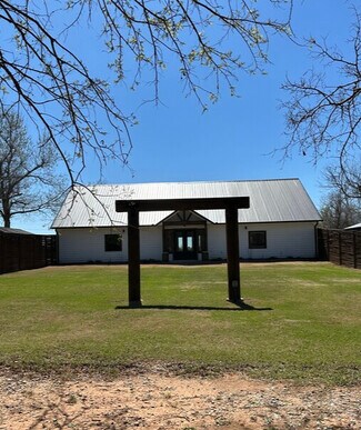 This specialty commercial property consists of 3,400 sf and sits on 4.18 acres. Established in the community as a wedding venue and event center in the heart of Southwest Oklahoma. This unique property comes equipped with signage, bathrooms, kitchens, a private suite, bridal and groom suites, a large, fenced yard, open space & storage. Digital Entry. Outside of city limits allows for a wide range of business uses. Solid structured building consisting mainly of 2x6 construction. Metal roof, a gated entry and gravel parking lot leads to a concrete sidewalk along the front of the building. The front doors open to a large, well-lit reception hall. A small kitchenette with washer and dryer is located to the left of the main room. There are men’s and women’s ADA restrooms located on the ground floor easily accessible off the main event space. The bridal suite has ample counter space, lighting and mirrors, an ADA compliant restroom and changing room. The north side of the reception hall opens to a large fenced grassy yard perfect for ceremonies or other outdoor activities. Electricity also runs off each fence line and the arbor, located at the center rear of the yard. The west side of the fence leads to a separate groom suite. The kitchenette & laundry room can also be accessed from the west side entry and leads upstairs to a private suite. The upstairs suite includes a full kitchen and bathroom, King size bed and closet space. There is a storage shed on the east side of the fence and a maintenance shed on the northwest side of the lot. The property has three wells. Utilities include septic, water, and electric. Four HVAC units are located on the west side of the building. The sprinkler system runs off the well. Irrigation to the front and back yard. Equipped with RV hookups. A rare opportunity to own a special use one hour from OKC and 30 minutes from Medicine Park.