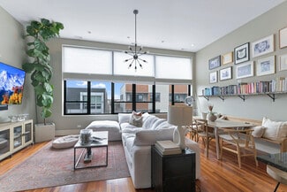 Fully rented and rarely available 7-unit elevator condo quality building in the heart of Bucktown. This well-maintained building is ready for the next investor to sit back and collect rent. Monthly gross income $29,637. Two commercial store front spaces with long term leases in place with leases ending in 2028. All residential units are 3 bedrooms, 2 bath condo quality units featuring large custom kitchen with granite countertops, stainless appliances, custom cabinets opening to living room and dining room. Three true bedrooms features primary bedroom with ensuite bathroom with double bowl stone countertops, and separate shower. Large second and third bedrooms along with updated second bath. Hardwood floors throughout. All units have separate HVAC, in-unit washer and dryer and all pay their own utilities. All residential finishes similar in all units. Unit 4W and 4E have interior unit stairs to access the private roof deck. Unit 3 is a full floor with huge front and rear terrace spaces to entertain. Unit 3 features three-bedroom, two full baths plus a half bath. Full floor unit 3 primary bath has double bowl sink, separate shower plus soaking tub. Photos are from unit 4W along with floorplan, 2W are identical to 4W. 2E, 4E units are the same as 4W layout just flipped. Unit 3 is a full floor see floorplan. Finishes in the building are all high end and similar throughout. Parking spaces in the rear of the building. A member of the LLC holds an Illinois real estate license. The listing broker is not a member of the LLC.