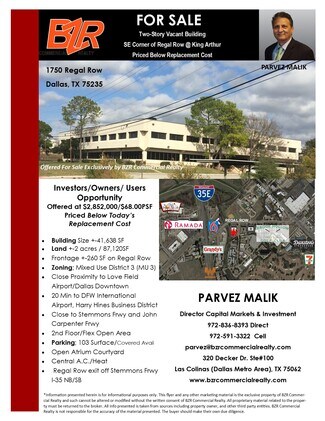 • East side of the building can be immediately leased. Multiple access to the building. Minutes away from downtown Dallas, Harry Hines, Love Field