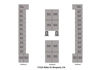 Newly remodeled Industrial spaces for lease located in the hub of Hesperia's industrial district. Units range from ±960 to ±2,640 square feet. Each unit features a private office, restroom, and warehouse with 12x12 roll-up door. Leases are Month-to-Month. The property offers plenty of parking, a new roof, and a freshly coated parking lot. This space is perfect for a contractor or storage-type user. Note: This property does not accommodate automotive users.
