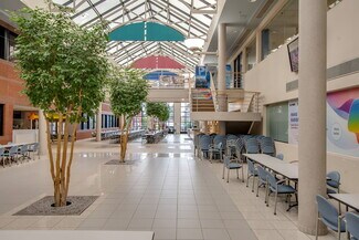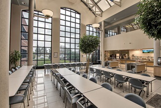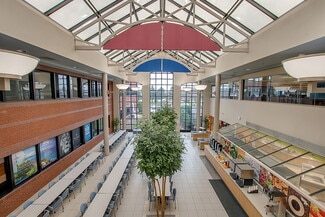 Situated on 23.49 acres, the campus-style property features a professional brick façade with ribbon glass, over 1,200 parking spaces, a deep dock with overhead door, and a backup generator supporting uninterrupted operations. Thoughtfully designed with a bright glass-ceiling atrium, full-service cafeteria, and flexible open layouts- its adaptable configuration and robust infrastructure make it an exceptional fit for a prominent HQ, high-density back office, medical office, or other professional services.