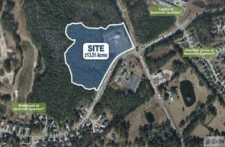 SVN is pleased to offer ±13.51 commercial acres for sale at the signalized northwest corner of Pooler Parkway (Quacco Road) and Spanton Crescent within Savannah Quarters®. The property should conceptually yield two outparcels with a larger rear tract, providing flexibility for phased or mixed-use commercial development. The site benefits from existing infrastructure including public water and sewer extended within the property boundary, along with established access from Quacco Road via Spanton Crescent with completed curb cut and access improvements. On-site improvements include clearing and grading, a former ±3,286-square-foot church facility, and an existing paved parking lot. Pooler Parkway is currently being widened to four lanes extending to Highway 17 (Ogeechee Road), which will enhance traffic flow and long-term accessibility to the site. The property is zoned PUD and permits a broad range of commercial uses consistent with the City of Pooler’s C-2 designation. Convenience stores, traditional residential development, and certain noxious uses are restricted under the Savannah Quarters PUD documents; however, the remaining permitted uses support a wide range of senior housing, retail, medical, service, and general commercial development concepts.