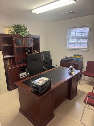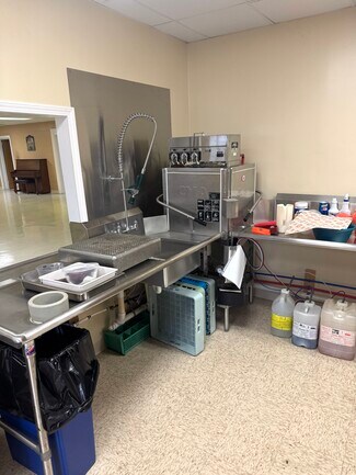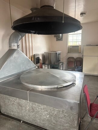 An additional outbuilding offers valuable flexibility with one large common office, two smaller offices, one bathroom, and two roll-up doors leading to a generous cooking and prep area—ideal for events and community outreach. The property also includes 65 parking spaces.