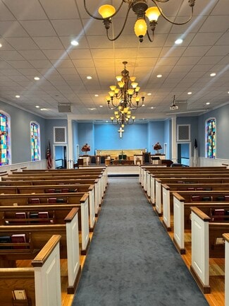 Norton Commercial Acreage Group is proud to present this ±2.8-acre church campus offering a total of ±16,749 SF conveniently located near US-27. The main church building features a well-appointed sanctuary that seats approximately 200 people, along with a library room, five bathrooms, a large fellowship hall with fireplace, full commercial kitchen, nursery, classroom, and choir room on the primary level. The lower level includes seven classrooms and two additional bathrooms, providing ample space for ministry programs, youth activities, and administrative needs.