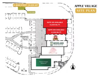 The center benefits from constant customer flow generated by surrounding big-box retail, national dining, and nearby distribution employment. Formerly occupied by GameStop and Cold Stone, the spaces feature recognizable footprints well suited for second-generation retail with efficient layouts and excellent storefront exposure. Easy access, generous parking, and a signalized entry position Apple Village as a convenient stop for both local residents and regional commuters.