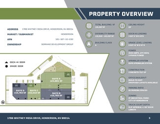 Serrano Whitney Mesa Industrial Center is a premier Class A ±61,067 SF manufacturing and distribution facility designed to meet the demands of modern industrial operations. This strategically located property combines state-of-the-art features with unparalleled accessibility, making it an ideal choice for businesses looking to thrive in a dynamic market.