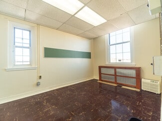 The property was originally used as a grammar school and offers extensive space for a variety of uses. The first floor features a conference room with a bathroom, a main office, six classrooms or offices, a multi-purpose room with a bath, a storage room, and more. The second floor includes another conference room, a lounge with a bathroom, and eight classrooms or offices. An addition on the first floor provides a gymnasium, stage, dressing room with bathroom, and four storage rooms. The lower level offers a cafeteria, kitchen, two kitchen storage areas, a pantry, a janitorial closet, and separate boys’ and girls’ restrooms. This property could be recreated as a teaching facility or adapted for many other purposes. Potential uses include non-profit organizations, a municipal community center, or leasing to another educational institution.