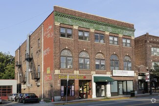 Open space with high ceilings suitable for office, studio, performance or meeting space. Three private restrooms. Street parking on Washington Street. Stage area comes fully equipped with a dedicated independent circuit breaker with eight 20-amp circuits, and front and back stage lighting poles.