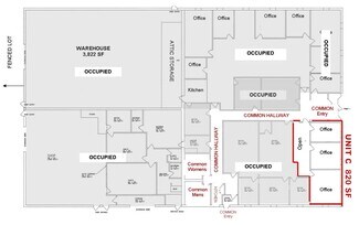 Unit C: 820 SF office space in part of a larger building. Located just minutes from Metra Station in Cary Point Industrial Park. Space is comprised of 3 private offices and an open area. Common areas include baths and shared kitchenette recently remodeled. Landlord pays gas, electric and water. Only $820/mo.