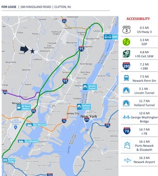 16,000 SF industrial warehouse for lease in Clifton, NJ located at 180 Kingsland Rd, Clifton, NJ 07014, offering a highly functional owner-user or flex industrial opportunity in Northern New Jersey’s premier logistics corridor.