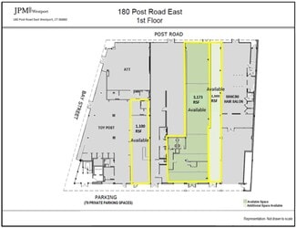 180 Post Road East is a fully renovated, modern, mixed-use downtown Westport building with its owned large parking lot: it located on over one acre of land. The property is Zoned BCD – Business Center District: it allows for a number of commercial uses, including office, retail and medical. The building is conveniently located within walking distance of all shopping and amenities of downtown Westport: restaurants, the Saugatuck River, Main Street shopping, Town Hall, the Westport Library. The two-story building has an elevator and handicap access, making it suitable for medical use. The excellent location, demographic profile and parking make it a very favorable place to conduct any business, office, medical, or retail.