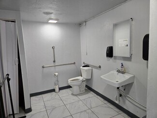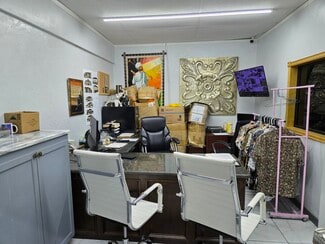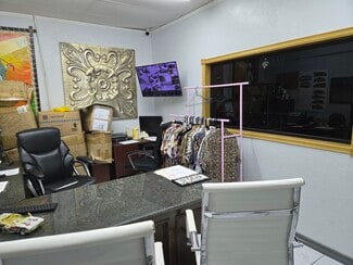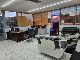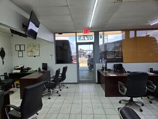 Car lot with canopy, a 35 x35 3 door garage, storage building and carport for detailing. Property is completely concrete with Iron fencing and two gates. The building has been remodeled into a sales office with handicapped facilities. The property is Zoned c 3 but has been approved for a special permit for a car lot.