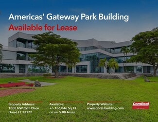 Class A Warehouse/Office located in Americas’ Gateway Park, inside City of Doral for Sale or Lease! ComReal is pleased to present this top-rated facility featuring 106,046 SF on 5.88 Acres. Built in 1990 with roof replaced in 2006. It offers spectacular 180-degree views of The Fingerlakes. Several terraces and executive offices overlook the lake. Main lobby entrance features indoor fountain and amazing glass atrium. Refrigerated rooms, dry warehouse, elegant offices on three floors and abundant parking fits multiple uses. Great opportunity for users and investors. Strategically located just minutes away from major highways and Miami International Airport. Located within The City of Doral which is home to the Miami Herald, Carnival Cruise Lines, US Southern Command and the Trump National Doral. Adjacent neighbor is WFOR-TV CBS. Just a few minutes away is access to Florida’s Turnpike, Dolphin and Palmetto Expressways and the Miami International Airport. Property Features: - +/- 106,046 SF Total - +/- 5.88 Acres Lot - +/- 36,516 SF Office Total - +/- 62,640 SF Cooler - +/- 6,890 SF Dry Warehouse - 22 Docks / 2 Ramps - 20’ Clear Height - 207 Parking Spaces