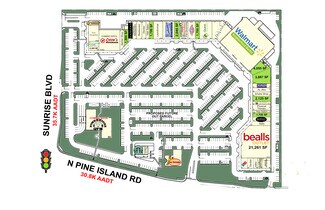 Retail space for lease in Jacaranda Square located in Plantation, FL at the NW corner of Pine Island Rd. and Sunrise Blvd. in Broward County. Anchored by Walmart Neighborhood Market, this grocery-anchored center provides repeat daily visitors and boasts an average traffic count of 75K+ cars daily. National tenants include Walmart Neighborhood Market, Bealls Outlet, Davita, Starbucks, La Granja, and Quest Diagnostics with Chow's Country Buffet & Powerhouse Gym Coming Soon. Jacaranda Square is centralized just 4 miles from I-595, I-95, I-75, the Florida Turnpike and close to Amerant Bank Arena and Sawgrass Mills Mall in Sunrise.