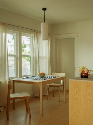 Each unit has been impeccably remodeled from top to bottom with a rare blend of natural textures and warm minimalism, think bespoke millwork, natural oak finishes, built-ins, and dreamy light-filled interiors. The fourplex features two 2-bed/2-bath layouts and two 2-bed/2-bath + dens, all with in-unit laundry, custom cabinetry, and thoughtfully curated furnishings and 1 parking space—making this a true turnkey offering.