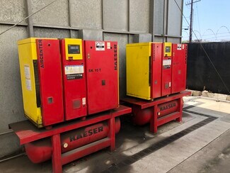 5% Procuring Broker Fee $1.25/SF G Teaser Rate * Call Broker for Terms IDEAL MANUFACTURING FACILITY FOR LEASE • 16,772 SF (Rear Unit) Manufacturing Facility • +/- 2,480 SF Office • Two Restrooms • 800 Amps-277/480 V (Verify) • 20’-23’ Warehouse Clearance • Three (3) Oversized GL Doors (18’9”w x 14’9”h) • Four (4) Interior - Five (5) Ton Cranes • One (1) Outdoor Bridge Crane • Warehouse Skylights • Sprinklered • Fenced Yard • South Coast AQMD- Paint Booth, Solvent Permitted Spray Booth (12’W x 49’L x 16’ H) • Two (2) Kaeser Compressors • Airlines Throughout Warehouse