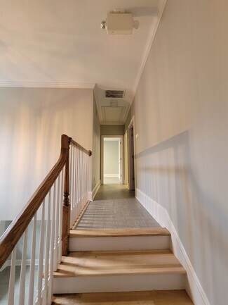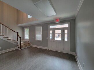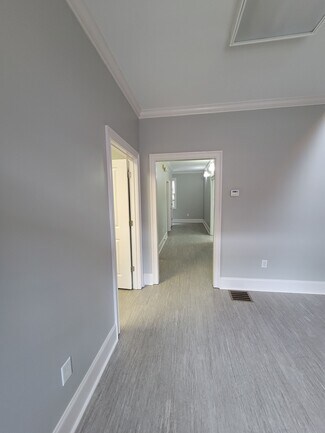 Walking into the main level you enter into the lobby/reception area with high ceilings and the staircase to the second floor. To the left of the lobby is an office and down the hall are two more offices, one restroom and a kitchenette. On the second floor are three additional offices. All offices on both floors could comfortably hold two or more desks/occupants if needed. In the basement level there is open storage space with exterior access as well as a large built in office space with a second exterior access. The basement also hosts an additional restroom. The property has lots at both the front and rear of the building for additional parking and access.