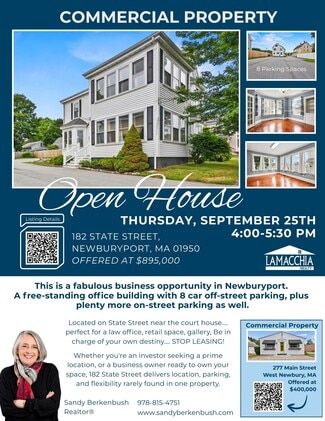 Welcome to 182 State Street, a unique opportunity to own a standalone commercial building in the heart of downtown Newburyport—Zoned B1, this versatile property features seven private offices, a welcoming reception area, flexible workspace.