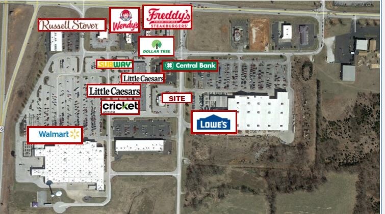 attached enclosed area for smoking meat; dinning room seats 48+/-; private dining room for 12+/- and full lounge seating approximately 19 at tables 12 at bar. 900 square foot patio seating 36+/-, with two televisions and fire pit. Drive– thru pick up window. Heavy traffic count, 2019... 20,920 VPD on MO HWY14. Surrounded by many local and national restaurant and retail chains, including Walmart and Loews.